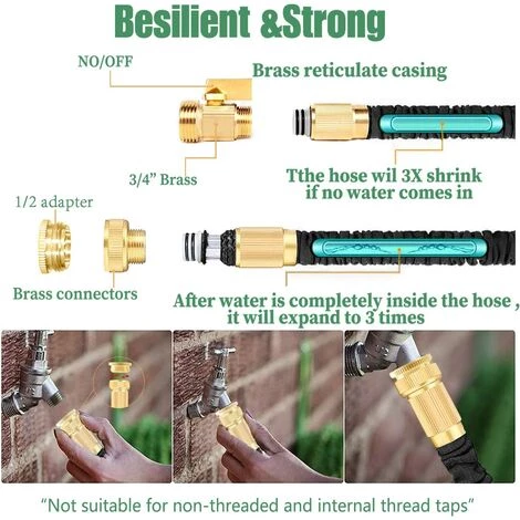 [Tuyau Arrosage rétractable] Lorsque notre Conduite Tuyau Arrosage est remplie d’eau, la Tuyau d arrosage peut rapidement se dilater et reprendre sa longueur normale après la vidange. 8 fonctions pour répondre à vos différents besoins, adaptées aux jardins, aux pelouses, au lavage de voiture, à l’arrosage, au nettoyage de la maison, etc.[Le tuyau d’arrosage est flexible et léger] Le tuyau arrosage a une couche extérieure en polyester léger et un noyau de canal très élastique, c’est pourquoi le tuyau arrosage extensible n’est pas facile à déformer et à tordre. Le matériau de haute qualité détermine que le poids du tuyau arrosage est inférieur à un tiers du tuyau d arrosage traditionnel, ce qui est plus pratique à utiliser pour nous.[Étanche et durable] La conduite tuyau arrosage adopte de nouveaux raccords en laiton à trois couches, qui peuvent empêcher efficacement les fuites, les fissures et la corrosion, et améliorer la durabilité de la tuyau arrosage.[Stockage facile] Le processus de stockage du tuyau d arrosage rétractable est pratique et facile. Lorsque vous avez fini d’utiliser le tuyau arrosage télescopique, le tuyau arrosage peut être suspendu au crochet pour tuyau d arrosage ou placé dans un sac de rangement, ce qui peut vous économiser efficacement de l’espace de stockage.[Garantie et service] Nous fournissons un service de maintenance de 3 mois. Si vous avez des questions lors de l’achat de nos tuyaux arrosage, n’hésitez pas à nous contacter, nous vous répondrons dans les 24 heures.