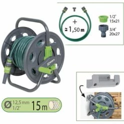 RIBIMEX Dévidoir RIBILAND PRA-DB-1104 – Enrouleur Avec Tuyau D’arrosage – 15 M – Ø 12,5 Mm