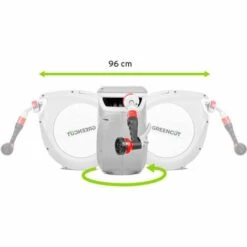 VONROC Dévidoir Automatique Avec Support Mural – Tuyau De 25M, Buse D’arrosage Et Raccords Inclus