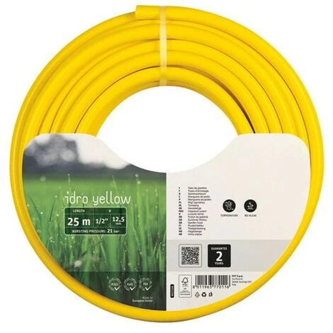 Tuyau guipé en pvc 3 couches pour un usage peu intensif. Revêtement extérieur de couleur jaune couvrante, renfort textile guipé, couche intérieure noire anti algues. Ce tuyau offre une utilisation fluide et maniable.Résiste -10°C à +40°C. Garantie 2 ans.