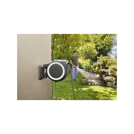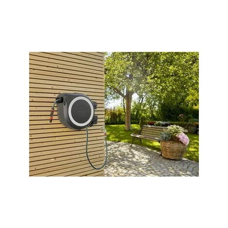 Avec le dévidoir automatique mural, votre tuyau d’arrosage reste toujours à portée de main. Les lances, pistolets d’arrosage et brosses de nettoyage peuvent être également accrochés au support mural.