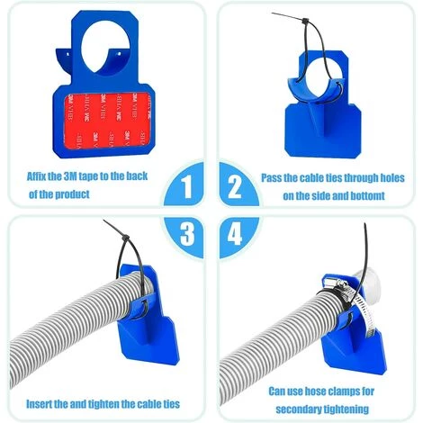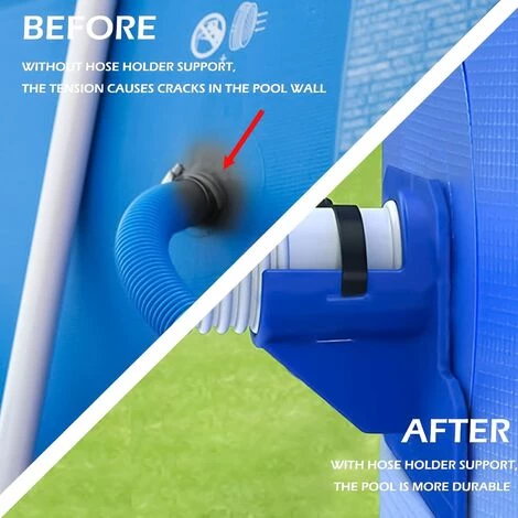 VOUS OBTIENDREZ — 2 supports de tuyau de piscine en matériau ABS, 4 attaches de câble pour fixer le tuyau, 2 morceaux d’autocollants adhésifs 3M pour fixer le support de tuyau au raccord de tuyau d’eau à l’extérieur de la piscine.PROTECTION EFFICACE — Lorsque l’entrée ou la sortie d’eau de la piscine est connectée au tuyau d’eau, le poids de l’eau pliera le tuyau, ce qui endommagera le raccordement du tuyau d’eau de la piscine. Notre support de tuyau peut fournir un support efficace au tuyau d’eau pour éviter tout dommage.FAITES ATTENTION AU MODÈLE — le support tuyau piscine convient aux tuyaux d’un diamètre inférieur à 38 mm, et la plupart des piscines du marché peuvent être utilisées, veuillez vérifier attentivement le modèle et la taille avant d’acheter.FACILE À INSTALLER — Fixez le adaptateur pour piscine à l’entrée d’eau du mur extérieur de la piscine avec de la colle 3M, gardez-le propre et sec avant de coller, et connectez le tuyau à la piscine après que la colle 3M soit fermement attachée.SERVICE INTIME — Si vous rencontrez des problèmes lors de l’achat du support tuyau piscine, veuillez nous contacter, le service client vous fournira un service de qualité.