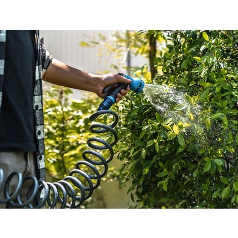 Contient : 1 tuyau, 2 connecteurs, 1 nez de robinet, 1 pistolet d’arrosage 6 jets, 2-4 bar