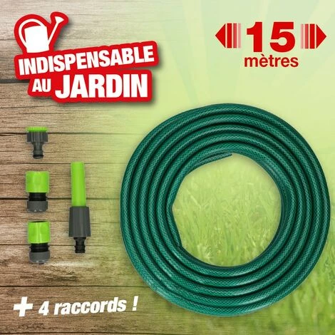 Ensemble tuyau d’arrosage de 15m et 4 embouts
