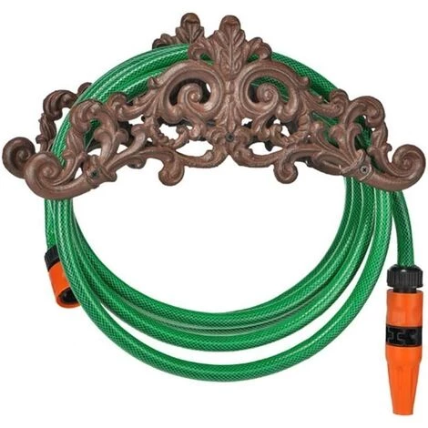 Vous cherchez un support mural pratique pour votre tuyau d’arrosage? Alors notre support de tuyau en fonte brunie est fait pour vous! Sa finition de haute qualité et son superbe design en font un accroche-regard absolu dans votre jardin!