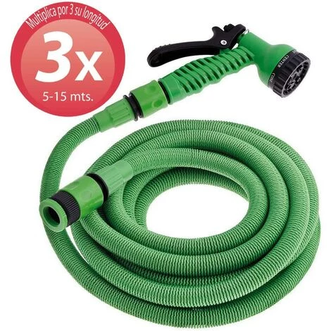‘Tube extensible arrosage ? Longueur?: de 5 à 15 mètres. ? Avec pistolet 7 positions. ? s’étend jusqu’à trois fois sa longueur. ? Comprend des adaptateurs de 3/4 « et 1. ? Connecteurs et tuyau unis par une agrafe métallique. ? Pour un bon funcionamieno et pour que le tuyau s’ameliorees totale est requise une pression minimale de 4 bars. ? Article egalement connu comme tube/tuyau, froissé, regar, regar, arrosage, autoenrollable, extensible, quai, tuyau de jardin set tuyau Longueur?: de 5 à 15 mètres