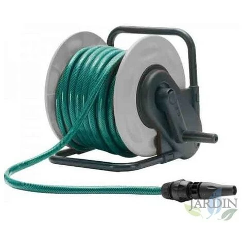 - Chariot à tuyaux comprenant un tuyau d’irrigation de 15 mètres.