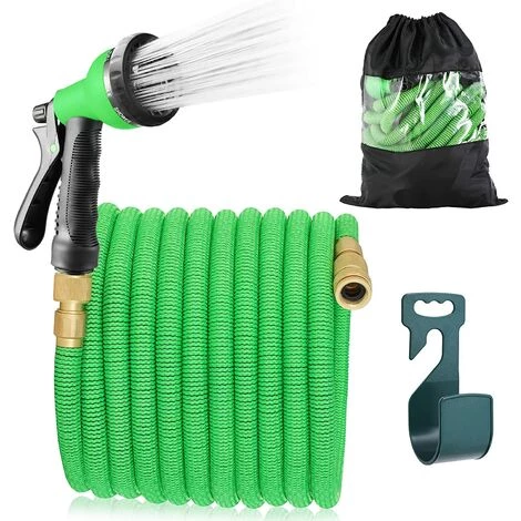 【Tuyau d’arrosage flexible 15 m】 Le tuyau d’arrosage peut être rallongé jusqu’à 3 fois sa longueur d’origine lorsqu’il est utilisé, le tuyau d’eau peut être rallongé jusqu’à 15 m(50 ft) et rétracté lorsque l’eau est fermée sans se tordre ni se tordre. Videz simplement l’eau du tuyau lorsqu’il n’est pas utilisé, avec des crochets et des sacs de rangement pour un rangement facile et peu encombrant.