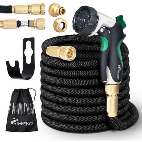Tuyau d’arrosage de qualité professionnelle, très flexible et extensible, avec raccords en laiton inoxydable et noyau en latex triple. La tête de pulvérisation multifonctions à 10 fonctions (8 réglages de pulvérisation, régulation de pression min/max, fonction de verrouillage pour la touche de pulvérisation) dispose d’une poignée ergonomique optimisée et d’un revêtement en caoutchouc pour une adhérence parfaite. La pression d’eau peut être réglée directement sur le pistolet à l’aide d’une commande à glissière et peut donc également être utilisée pour arroser les plantes sensibles.