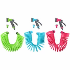 Tuyau en spirale extensible Anti-teintures Kinzo – Diverses couleurs.Fatigué de travailler lors de l’arrosage du jardin ou de nettoyer les surfaces de la maison?.Le tube en spirale est la solution pratique pour les plantes d’eau sur des balcons, des terrasses ou dans le jardin.Idéal pour lave-auto rapide, cyclomoteurs, vélos ou fenêtres.Après utilisation, le tube reviendra automatiquement à la taille minimale.La conformation particulière empêche le tube de s’impliquer et d’éviter de devoir jouer et rembobiner, gagner du temps et de la frustration.Ce tuyau de jardin est disponible en 3 couleurs: vert, bleu et rose.Flux maximum à la pression maximale: 7,5 m.Équipé d’une buse de pulvérisation.Dimensions 360 x 102 x 352 mm.Poids environ 0,749 kg.