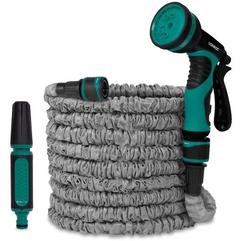 - Le tuyau d’arrosage flexible a une longueur minimale de 6,7 mètres, mais peut être rallongé jusqu’à trois fois pour atteindre une longueur de 20 mètres.
