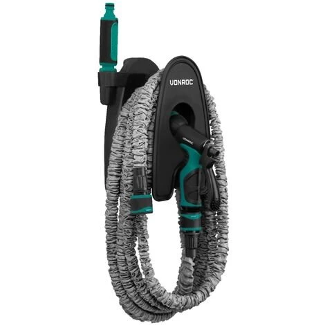 Ce tuyau d’arrosage de VONROC est un véritable miracle ! Lorsque vous le connectez au robinet, il devient trois fois plus long et atteint une longueur de 20 mètres. Lorsque vous fermez le robinet, le tuyau se rétrécit automatiquement. Le tuyau est facile à transporter et à ranger sur le support de tuyau en plastique inclus. Le support se fixe facilement au mur afin d’y enrouler le tuyau ultra facilement.