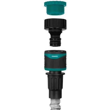 - 1x Tuyau d’arrosage 6,7 – 20 mètres, avec raccord de tuyau avec et sans arrêt d’eau.